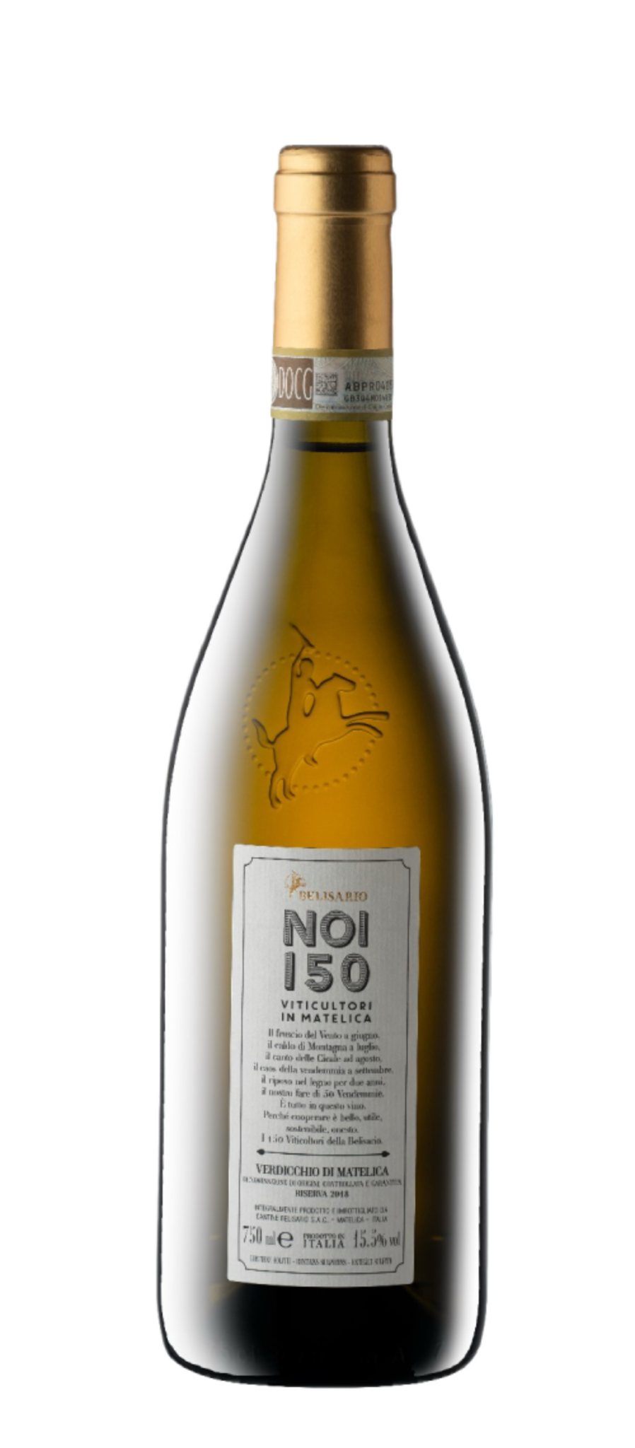 Die 'Noi 150' zijn de leden en eigenaars van de coöperatie Belisario, ieder lid selecteert 200 kg van zijn beste druiven en daar wordt deze wijn van gemaakt. De trost van 150 boeren in een fles is overrompelend: de wijn is strakdroog, zeer krachtig en warm.